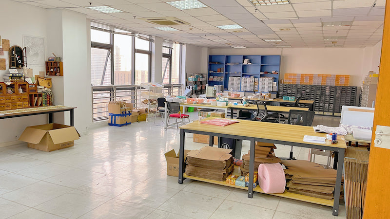 At the beginning, we only had three categories of products - Journal Supplies Kit, Stickers, and Tape. With a limited budget, we had to turn Wendy's living room into our makeshift studio. Thanks to all of you, our followers on social media, our business began to grow, and both our product range and inventory quickly expanded.